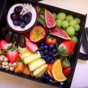 Kiwi, Watermelon Blueberries, Figs, Mango, Melons, Grapes, coconut, Raspberries,